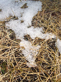 ↑芝生の上の雪