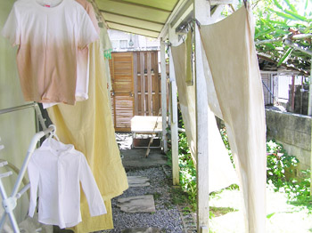 桐ダンスの引き出しと、布を天日干しした。