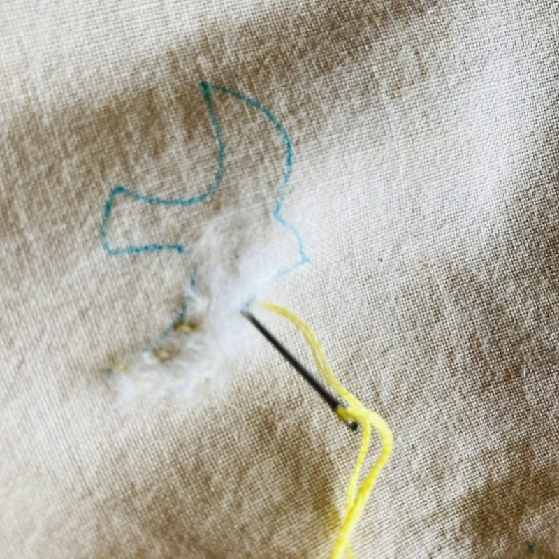 刺繍(ききみみずきん) By cotori 2025年11月13日2025年11月14日 手縫い刺繍。糸で絵を描きました。 トックリキワタのわたを縫い付けながら小鳥の刺繍。 土染めの縁を糸で刺繍というのもあり。 糸の色選び、組み合わせ次第でイメージが変わる。 刺繍初心者なのでとても時間がかかり、ずきんを1枚作るのに3日間以上かかってしまったけれど、作品が立体的になりなんかいい感じに仕上がったのでよし!です。