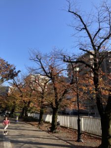 気がつけば、公園は晩秋の色。子どもの頃からよく遊びに来ていた公園、神田川。