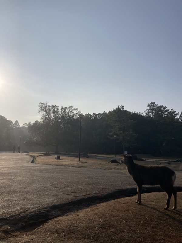 久しぶりの奈良公園の鹿さん。鹿と共に朝日を浴びる